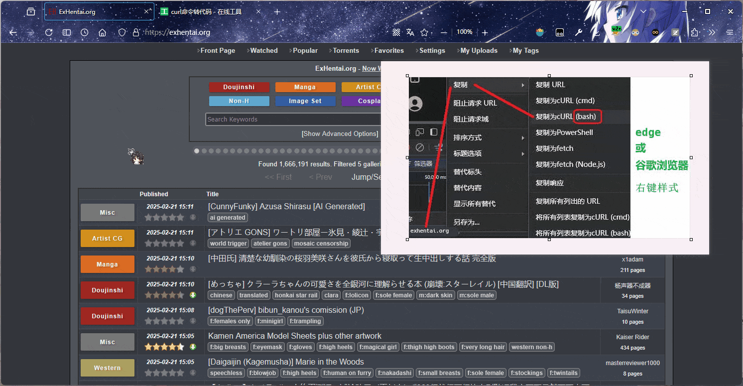 任意网站同理,登录状态下开 F12 控制台然后点首页,筛选出 html/文档 类型请求复制其 curl (POSIX/bash)